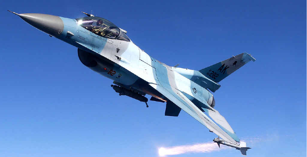 F-16 FIGHTING Falcons from the United States Air Force (USAF) 18th Aggressor Squadron have blasted into RAAF Base Amberley.